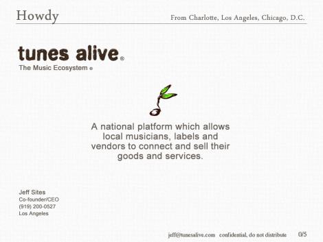 In 2009, after a year of slogging it behind the scenes at other peoples’ businesses and going to school full time in the evenings, I wanted to try something different. It needed to be about music. Nate and I had been throwing around ideas, for a while by then, on how to improve the business of music for artists and fans. We convinced each other it was feasible, and with a notebook of ideas, we founded Tunes Alive LLC.